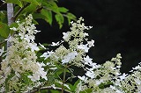 酷暑の渓に白く彩く花、アジサイの仲間のノリウツギ、暗い渓に映える白い花は訪花性の昆虫が多く集まります。