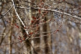 渓流脇ではフサザクラが咲き、ダンコウバイの蕾が割れ始める