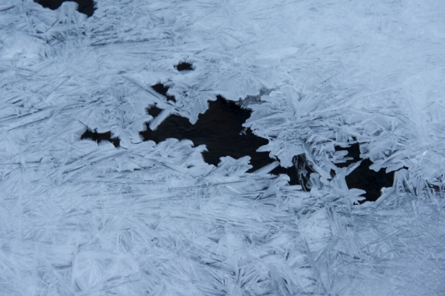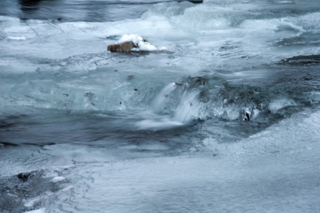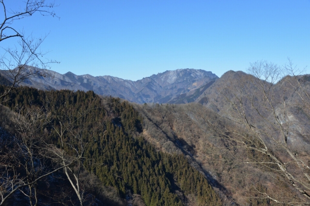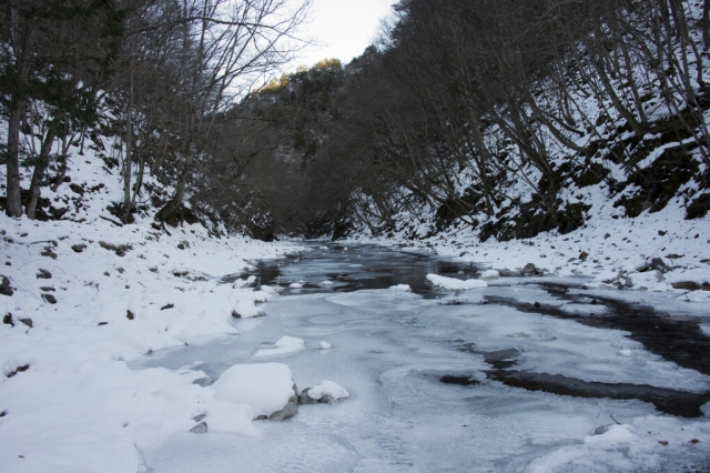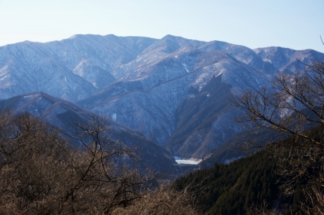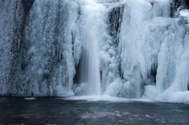 冬の山並みと氷瀑