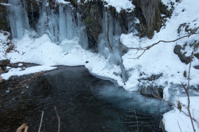 厳冬の日当たりの良い南向きの斜面ではカモシカが日向ぼっこをしています